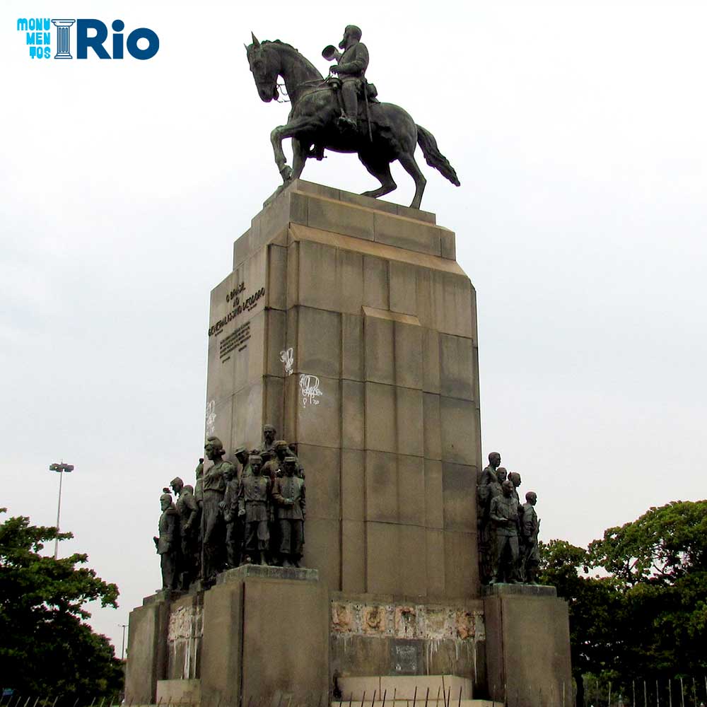 Praça Deodoro Autor: Modestino Kanto com colaboração de Honorio Peçanha, inaugurado em 15 de novembro de 1937-O monumento é um mausoléu onde repousam os restos mortais do Marechal Deodoro e de sua esposa. Com 23 metros de altura e pesando 850 toneladas, o imenso pedestal, em estilo art déco sustenta a estátua equestre do fundador da República, que ergue o seu quepe, reproduzindo o gesto de 15 de novembro de 1889. Quatro grupos escultóricos, em cada face do pedestal, apresentam outros vários próceres republicanos, desatacando-se, num espaço entre eles, em posição oposta à figura da República, a estátua em bronze de D. Rosa Maria Paulina da Fonseca, a matriarca alagoana mãe de Deodoro e de outros grandes militares.